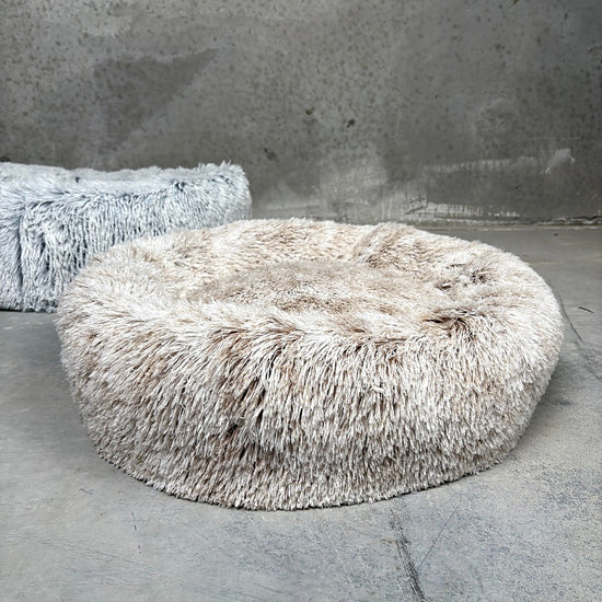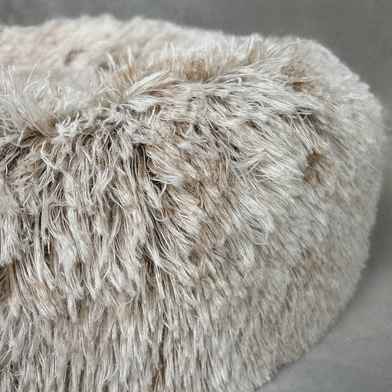 Just by looking at this dog bed, it looks incredibly soft, full and fluffy – and it is! Both the inside and the outside are made of the softest material. The filling is soft and expandable, which means that the dog can snuggle up in the bed. The fabric on the outside is the soft fleece, which with its 4 cm long strips makes the donut bed fluffy.