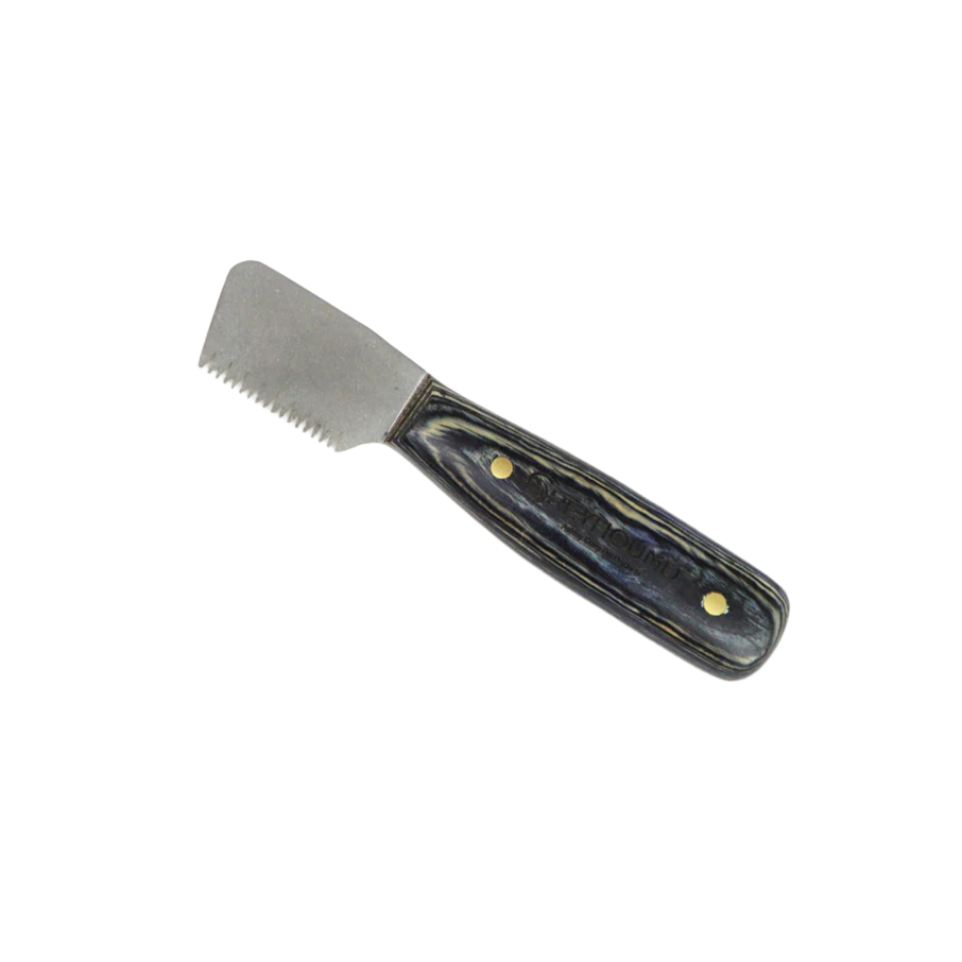 A beautiful European style trimming knife. Particularly suitable for wavy fur. 4 variants: double teeth, fine, medium and coarse.